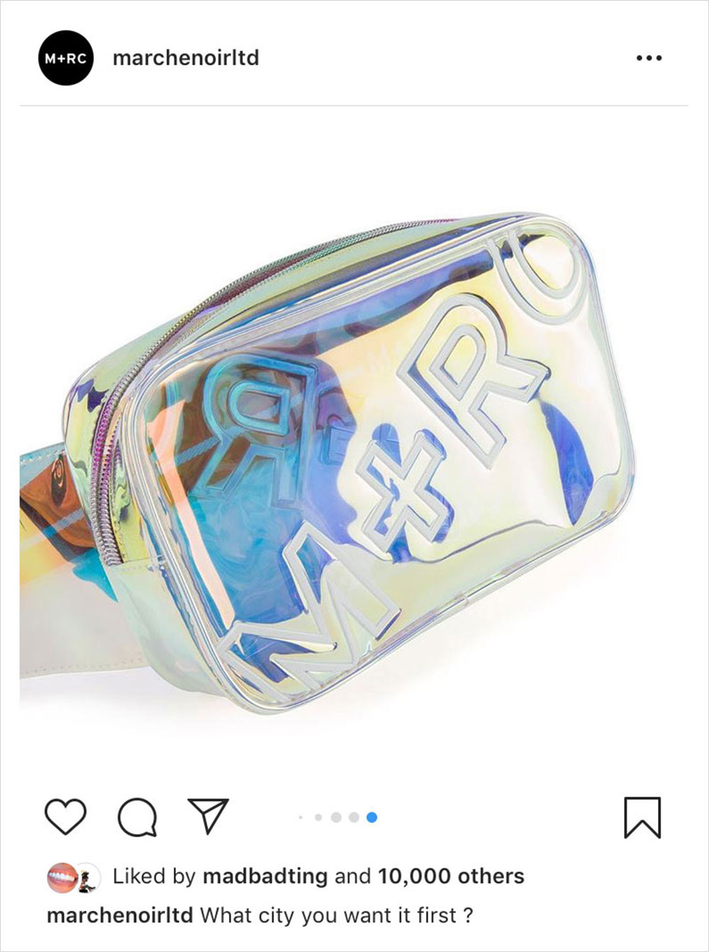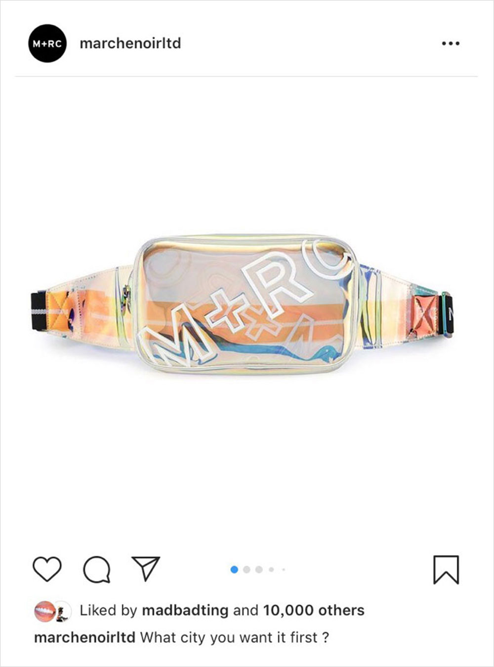 M+RC NOIR 日前发布最新腰包产品,如图中所示,幻彩的 PVC 材质是主要的吸睛点。这与 Louis Vuitton 2019 春夏的包袋产品是同样的材质设计,难道说,Louis Vuitton 带的这一波节奏,会代替时下透明 PVC 材质的 “潮流” 吗?当然了,好看的东西自然是值得追逐的,同时还给了大家不同价格的选择。