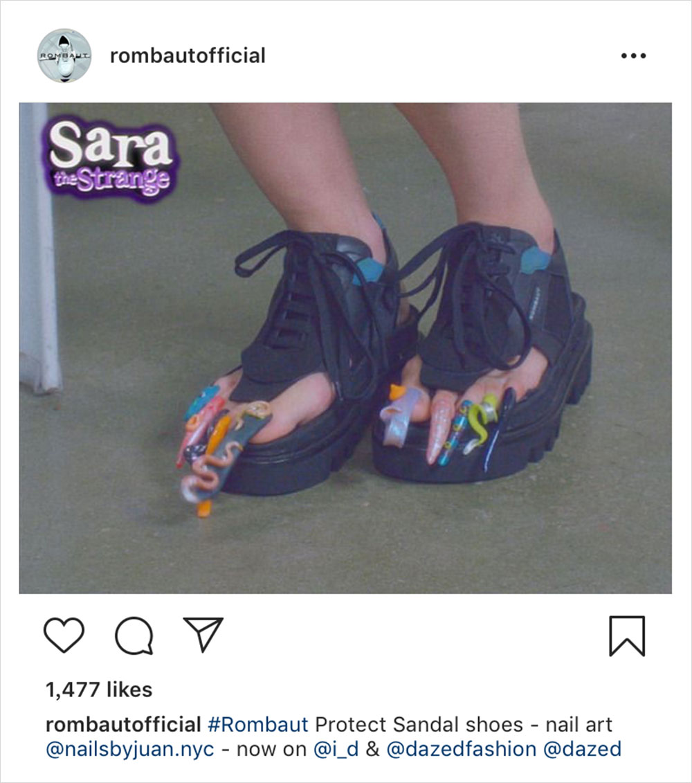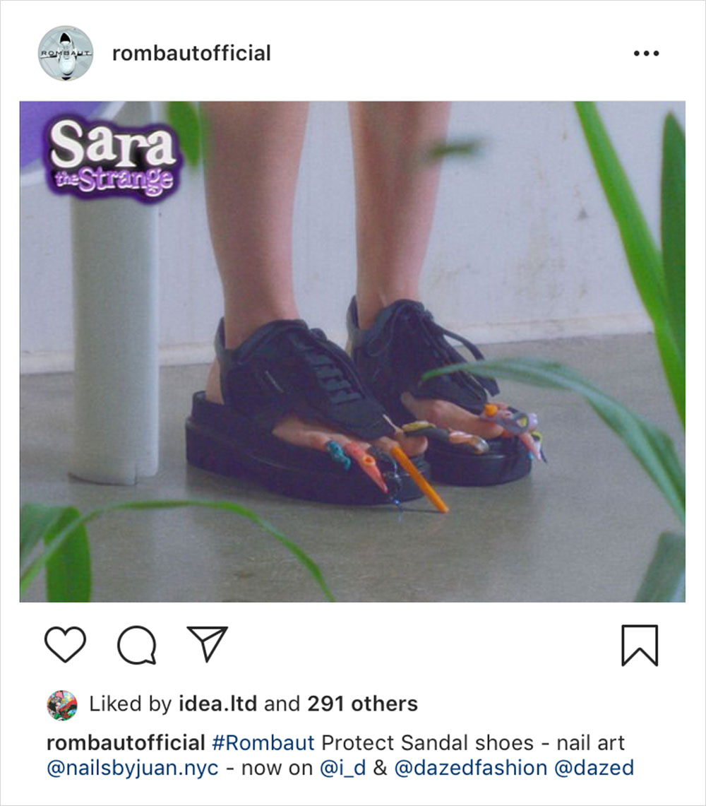 来自比利时的鞋履设计师品牌 Mats Rombaut 近日推出新的凉鞋款式,如你所见,一入眼模特脚上 “狂野” 的美甲比起鞋款更加吸引人们的注意力,但据附文所述,似乎 Lookbook 此番拍摄就是为了表达了鞋款的作用——秀出你的美甲… 对此,想必女性朋友更中意这一点吧?