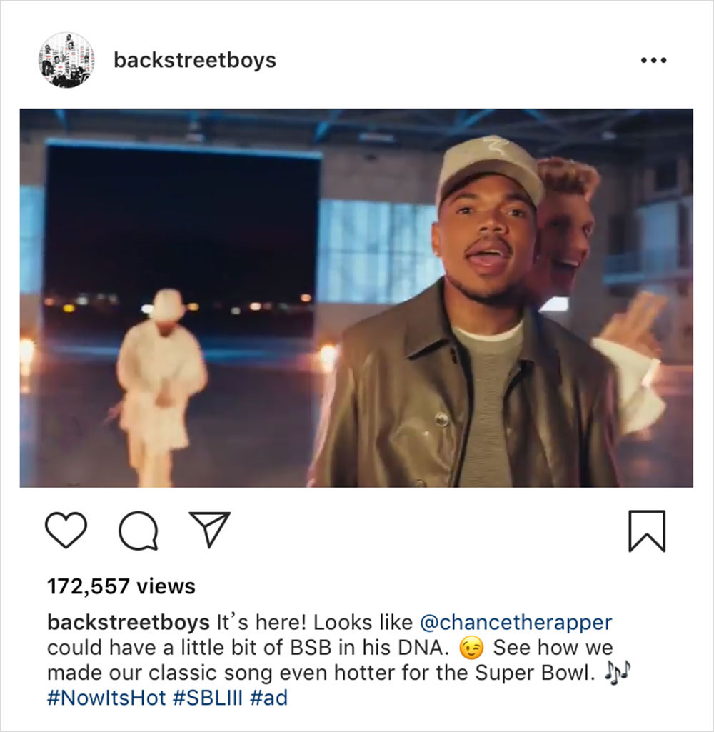 零食品牌 Doritos 近日聚集 Chance The Rapper 和后街男孩拍摄全新广告片,让大家一睹说唱匠人和经典组合的音乐合作。片中 Chance The Rapper Remix 了后街男孩的经典曲目《I Want It That Way》,双方还一起跳了一小段舞蹈,大家可以点击感受一番,看完你也许会有和我一样的疑问:这是一部 MV 吧…?
