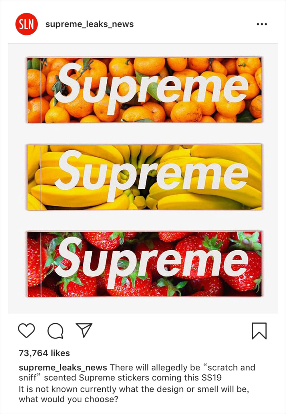 1. Supreme 19 春夏的贴纸,还带有香味?