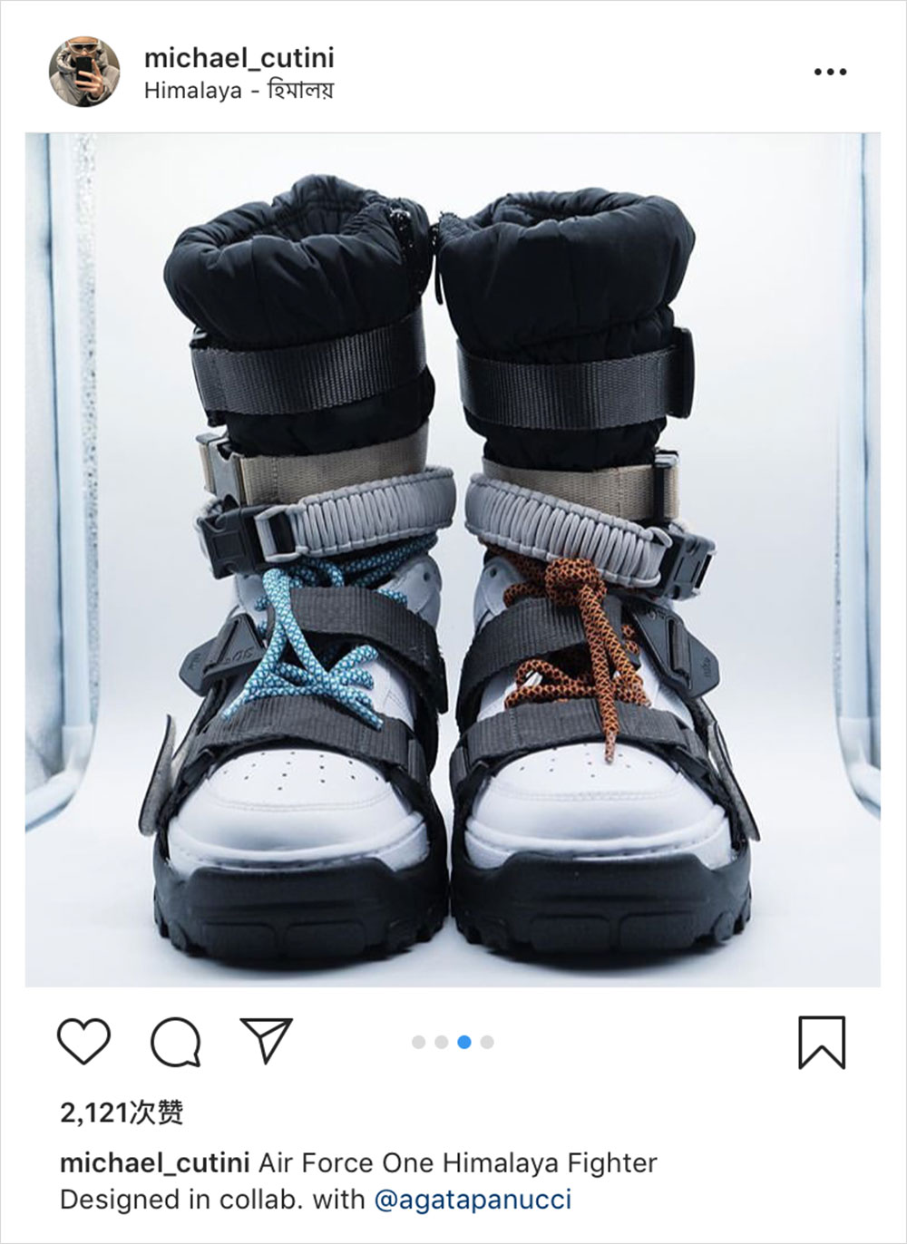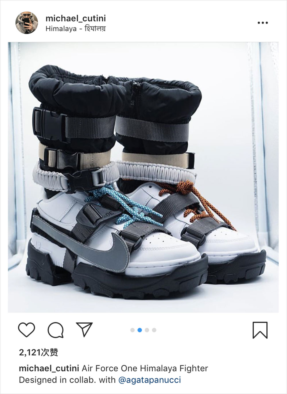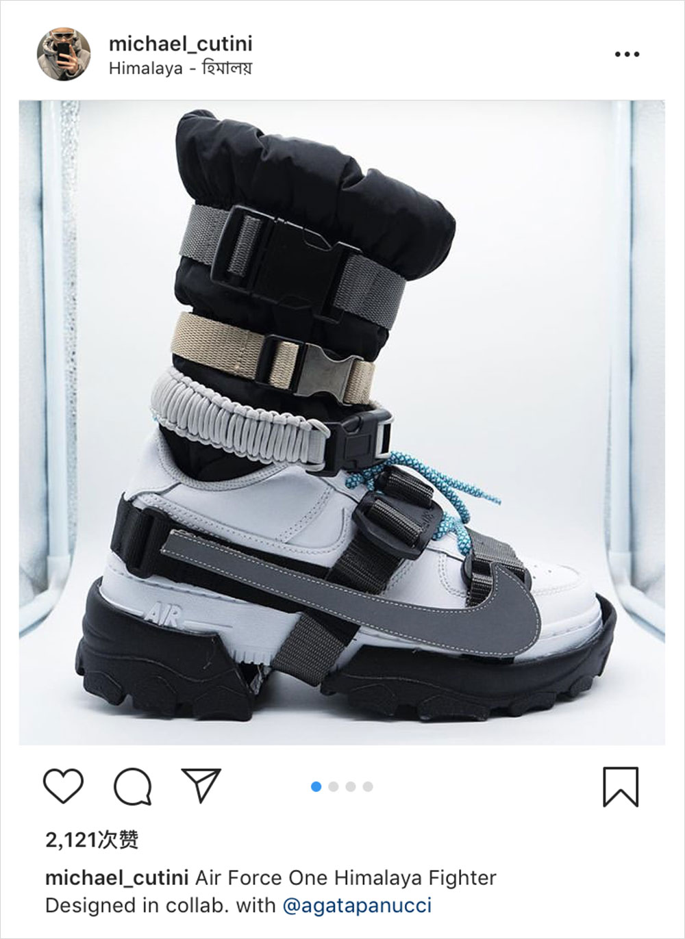 来自米兰的球鞋设计师 Michael Cutini 擅长将各个球鞋的设计 “打破重组” ,创作出让人眼前一亮的 “混血” 球鞋,凭借这些设计,他也慢慢地在 Instagram 上积累了不小的人气。今日 Michael Cutini 再发新作,将一双 Air Force 1 改造成了登山靴,赋予其多种安全扣、厚实的登山鞋底以及保暖的高鞋帮,几乎摆脱了 Air Force 1 原有的风格,别说,还挺帅…