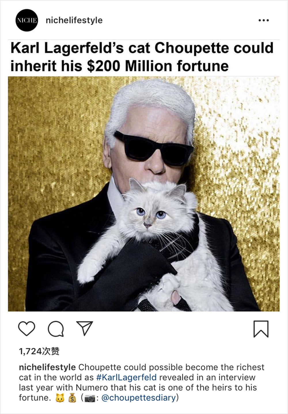 虽然 Karl Lagerfeld 想把遗产继承给 Choupette ,但不是所有法律都能允许这样的 “任性” … Numero 在采访这个问题时,老佛爷的原话是:“是的,但其他还有,别担心,每个人都有” ,由此看来,Karl Lagerfeld 应该还是有所准备的,你们认为呢?