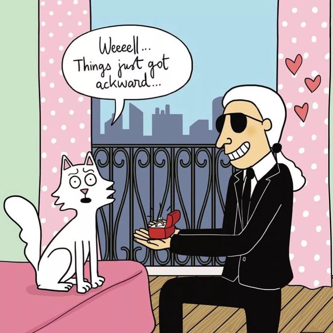 想和猫结婚的铲屎官… 插画出自老佛爷的 Instagram @karllagerfeld