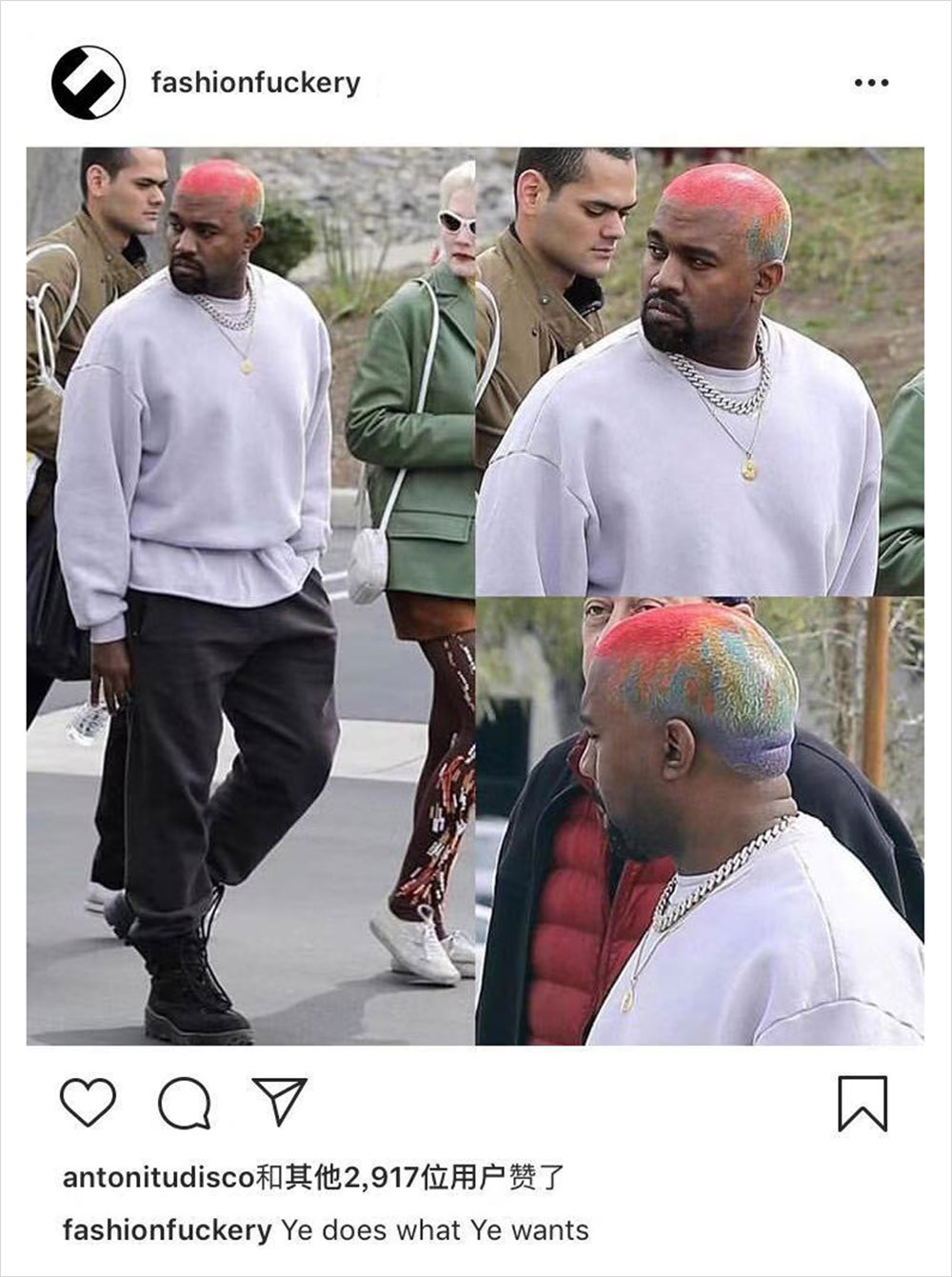 通过 YEEZY 改变球鞋领域的 Kanye West 自然在潮流圈有着不可忽略的影响,他本身的日常穿搭也时有可以借鉴的地方,直至近日他的 “彩虹” 发色曝于 Instagram … 实在让人眼前一亮,毕竟 Kanye 很少在染发上做些 “突破” ,而且这色系的熟悉感… 难不成是从 6ix9ine 身上获取的灵感?