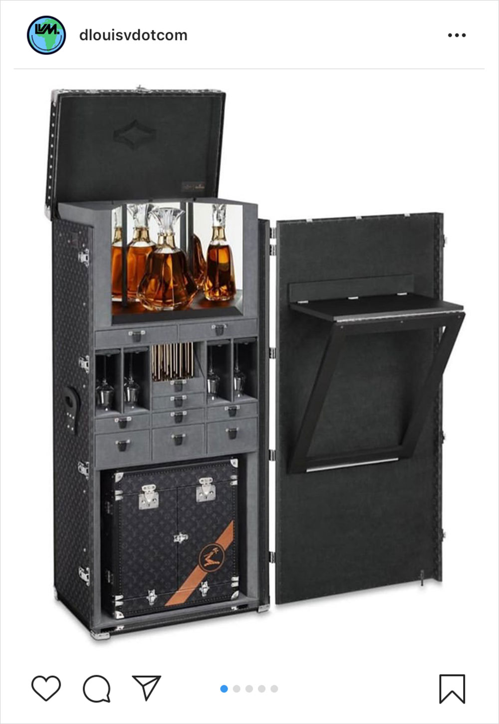 虽然 Louis Vuitton 在产品的设计上越来越年轻化,但作为时装屋品牌,总少不了它 “奢侈” 的那一面。今日情报账号 @dlouisvdotcom 就释出了 LV 和世界三大干邑品牌之一 HENNESEY ECLIPSE 联名的两款酒箱 MALLE 和 BOITE ,打开后呈现的就是一个微型酒柜,据账号所述,两个尺寸的价格分别为 210,000 和 65,000 欧元,你要是喜欢,建议折合人民币后深思一下…