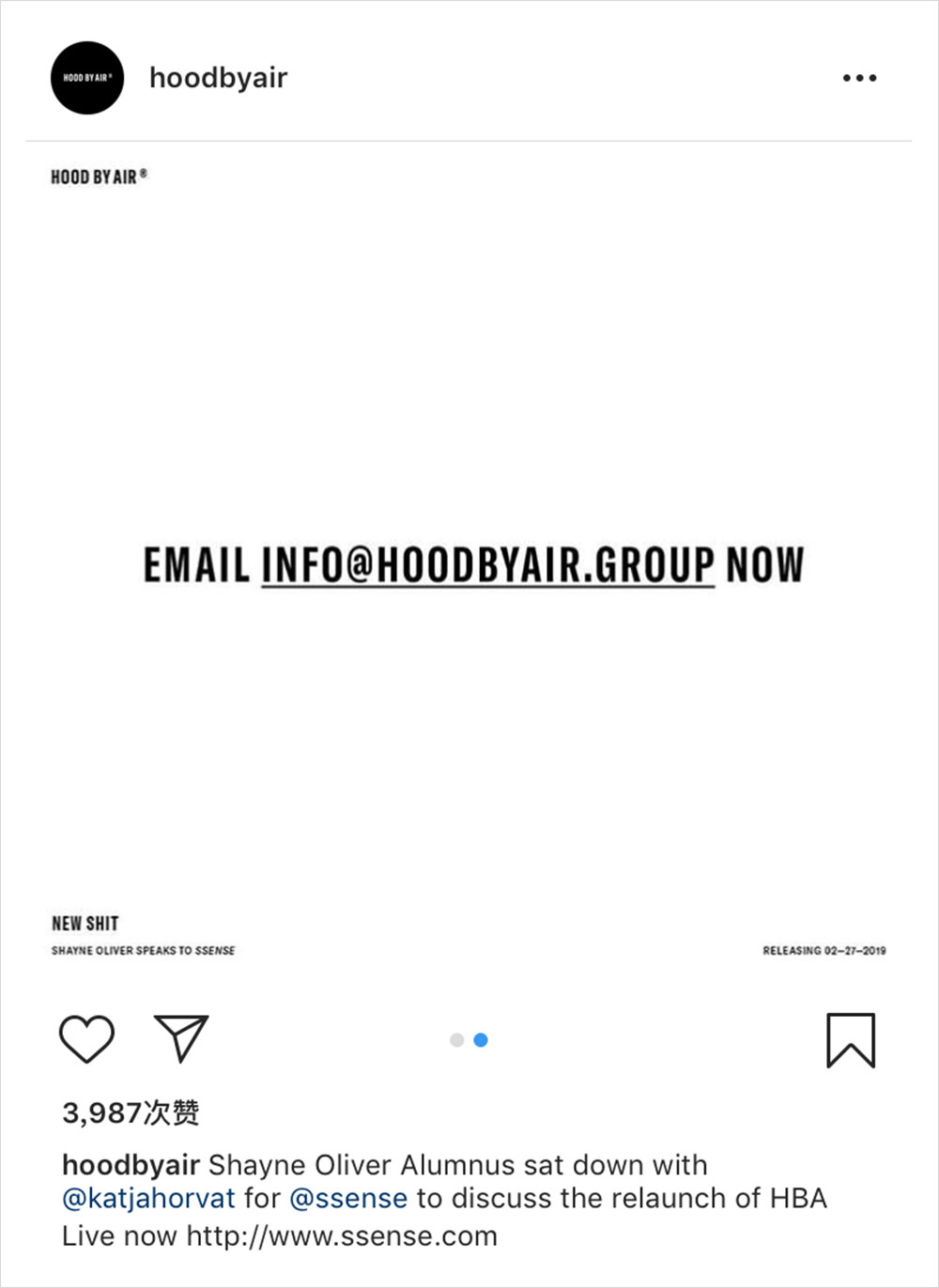 时尚品牌 HOOD BY AIR 在 2017 年宣布了无限期停业,尽管在当时就有不少人认为,Shayne Oliver 和他的品牌已经走到了停摆的边缘,但不免还是让喜欢 HBA 的朋友有些难以接受。而今日,HOOD BY AIR 却悄然回归 Instagram ,并开通品牌主页!据了解,是 Kanye West 和 Shayne Oliver 在时尚杂志《Interview Magazine》的采访通话中促成了此事,而《Dazed》则透露品牌新的系列可能会避开时装周日程进行发布,大家可以开始期待起来啦。