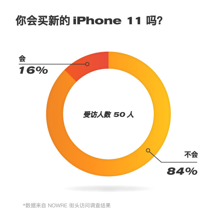 在发布会前,曾有专家预测 iPhone 11 系列销量将会超过去年的 iPhone XS 系列,不过现在看来形势并不是特别乐观。在受访的 50 人中,只有 8 人(16%)表示自己会入手新的 iPhone,其中有 3 人更倾向于考虑 iPhone 11,因为最具有性价比;一部分消费者也表示自己的手机还可以多战几年,甚至有人用 iPhone 6 已经 5 年,仍然没有换机的打算;当然,国产机爱好者也不在少数。