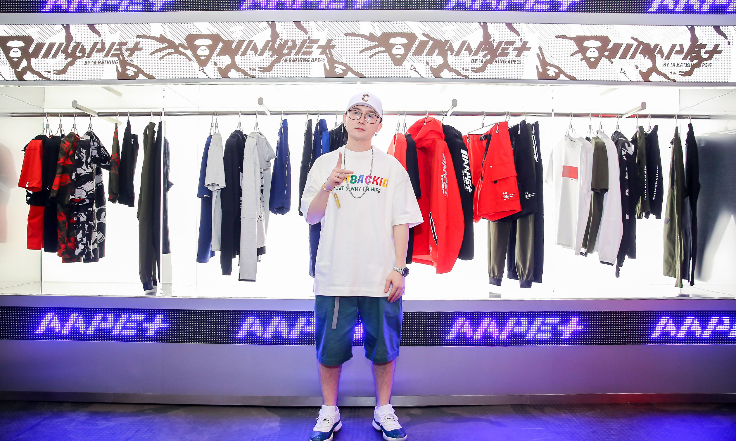 来到现场的除了参展的球鞋爱好者之外,还有不少艺人、KOL 等等,比如说这两年凭借《中国新说唱》走红的说唱歌手王以太、那吾克热、马俊,还有在全球范围内知名的 Sneakerhead Yeezy Busta、Jaysee Lopez、Aleali May 等等,都在 AAPE+ 的 Booth 打卡留念,吸引不少粉丝来合影参观。