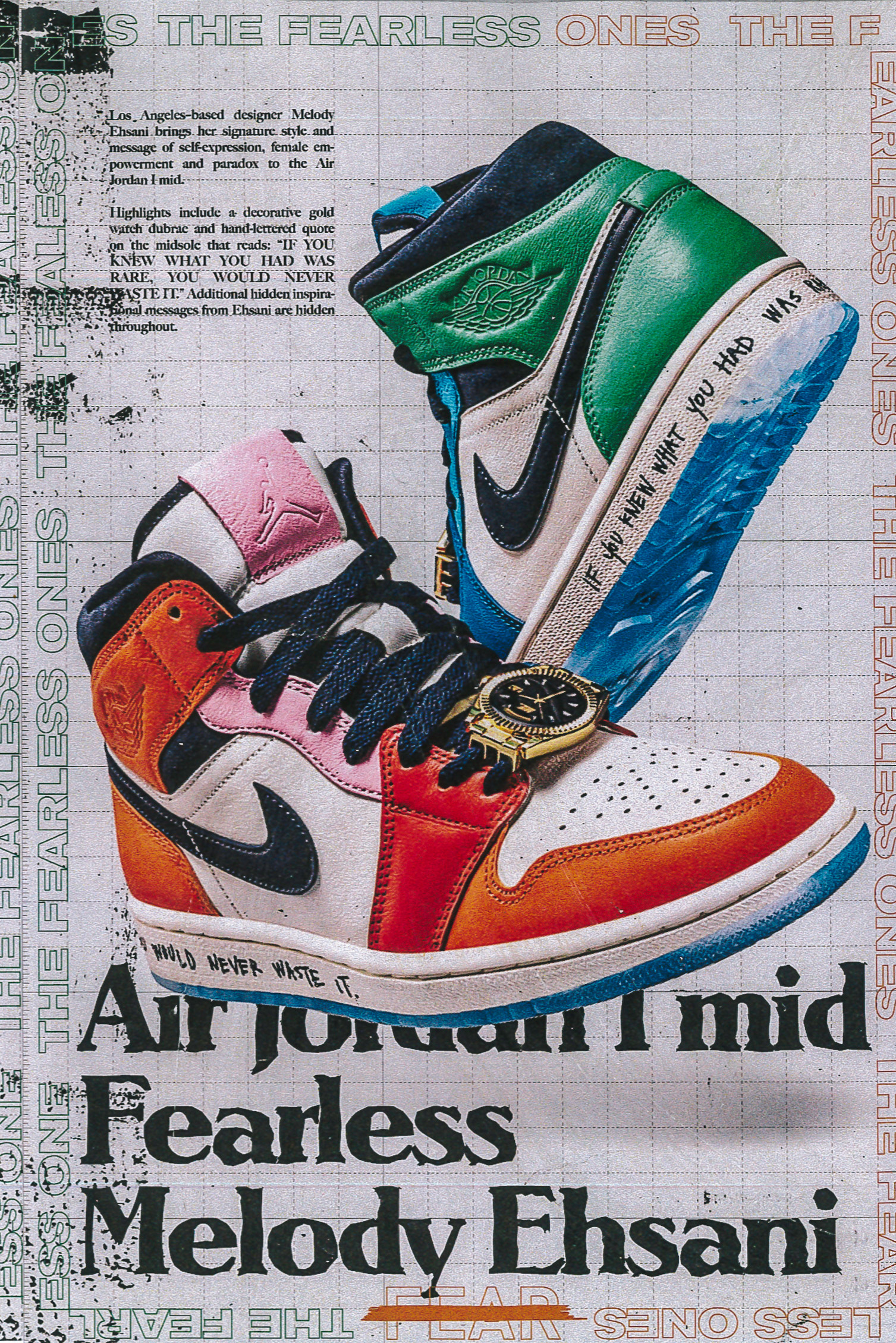 如果要说体现「女性+无畏」的主题,那么一直靠设计和理念来追求女性独立和平等的洛杉矶女装设计师 Melody Ehsani,在身份属性上是相当契合的,这点从中底的那一句手写体引文就能看出。不过除了这个「主旋律」之外,让我更加觉得这双鞋具有特色的地方在于它的设计在一定程度上体现了「球鞋 DIY」的概念,比如将表盘加在鞋子上,以及左右脚不同配色的「鸳鸯」搭配,进一步将定制球鞋的理念体现在了市售款式之上,而这种相对更加新奇的设计理念,也可能是让它成为这个系列中价格最高的款式的主要原因吧。