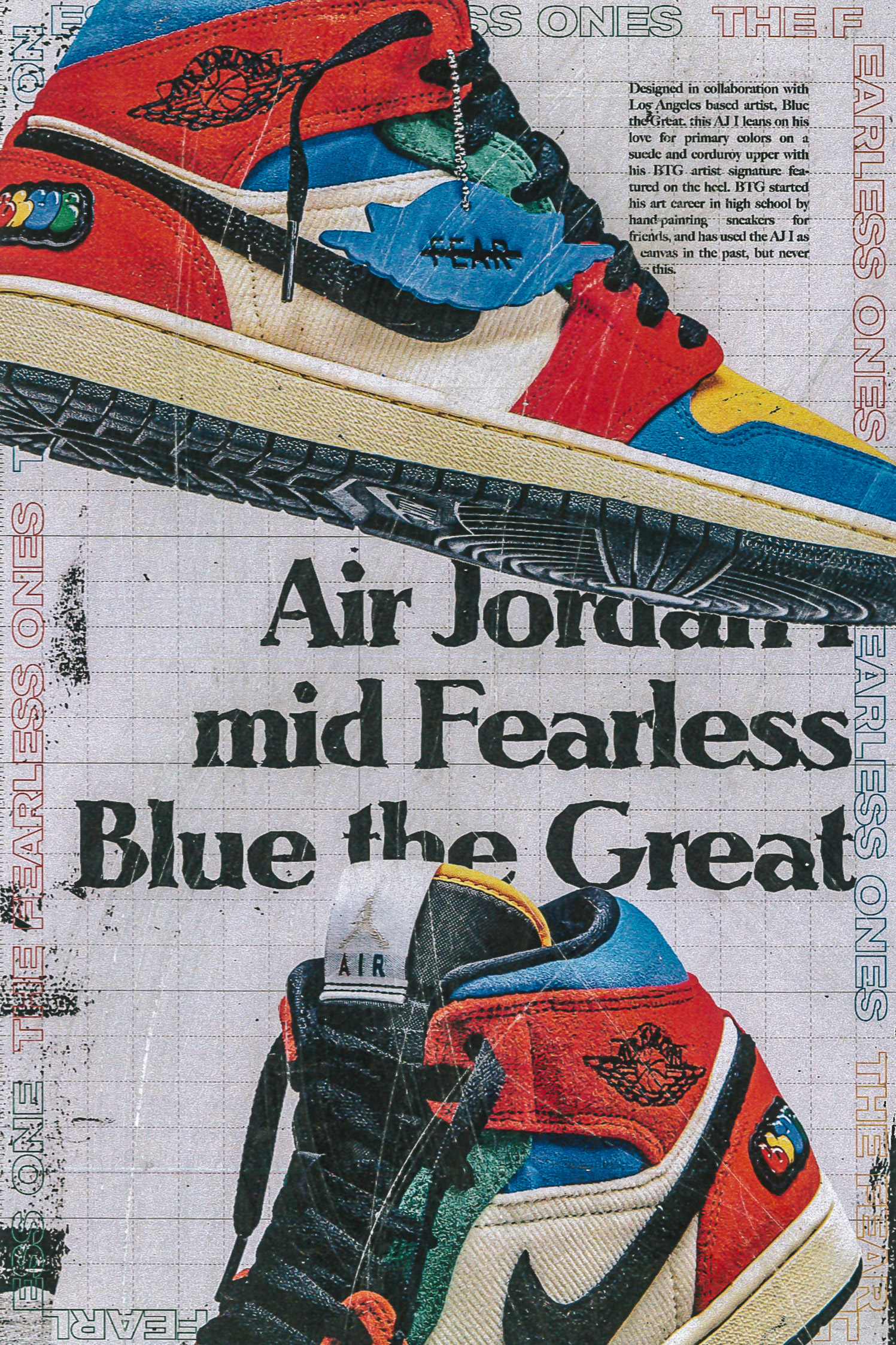 如果你关注过洛杉矶艺术家 Blue the Great 的作品,就会感觉到这款 Air Jordan I 很好的契合了他本人的创作特点以及对色彩的拿捏。当然,除了外观的颜色,仔细打量细节的话,翻毛皮、灯芯绒、羊毛的不同材质提供了更多层次的质感,再加上后跟处「BTG」的专属涂鸦 Logo,是近来不可多得的诚意联名了。
