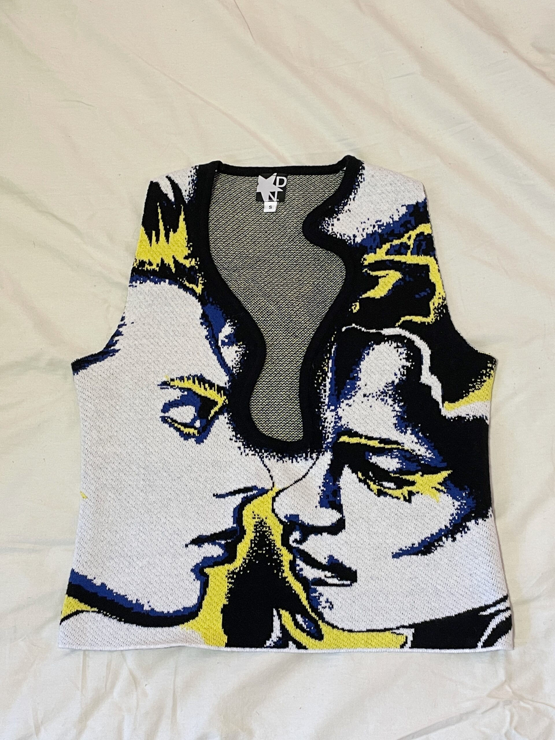 看到 Jennie、Hoyeon 等人倾情上身DEAR NIKITA 就立马下单了这件背心。不规则的前襟、大头像印花设计和针织面料的结合,怎么看都很特别吧!没想到我上身之后不管是配牛仔裤工装裤还是短裙都有些奇怪。或许它值得更「亚」的主人吧🥵