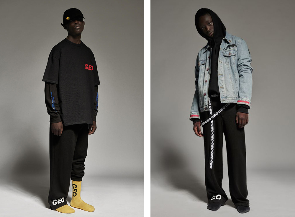 与此同时,另一位前 DONDA 的主力平面设计师 GEO Owen) 也在 2016 年自立门户成立同名品牌。从首个系列 “Collection One” 开始,GEO 标志性的 “地球”、“豹子” 等图案便牢牢抓住时装精们的眼球,提炼重工业元素并融合各种文化形成自己的风格,迅速成为 “Hi-Street” 品牌中最值得关注的新晋势力。