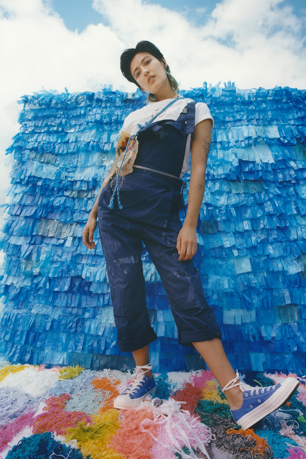 紧随其后地,Renew Denim 会以 Premium 版本的身份在 8 月份亮相。单看染色工艺,就决定了丹宁布要和其他材料区分开来。每条牛仔裤都有属于自己质感,特别是伴随着时间的推移,着用者不同的穿着习惯,给它们带去或磨损或落色的岁月痕迹。这种差异反为二次利用丹宁布(Up Cycled Denim)增添了未可知的个性。CONVERSE 同样找到了另一家合作伙伴,古着服饰零售商 Beyond Retro ,每季度里将采购数万条牛仔裤,专为制作 Chuck Taylor 。如此看来,称它 “one of a kind” 的私人定制,好像并不为过。等到来年春季,品牌后续还将推出 Renew Cotton(再生棉布)系列,到那时,也许能叫我们大开眼界也说不定。