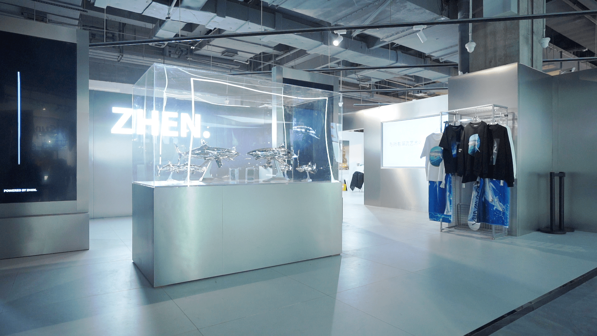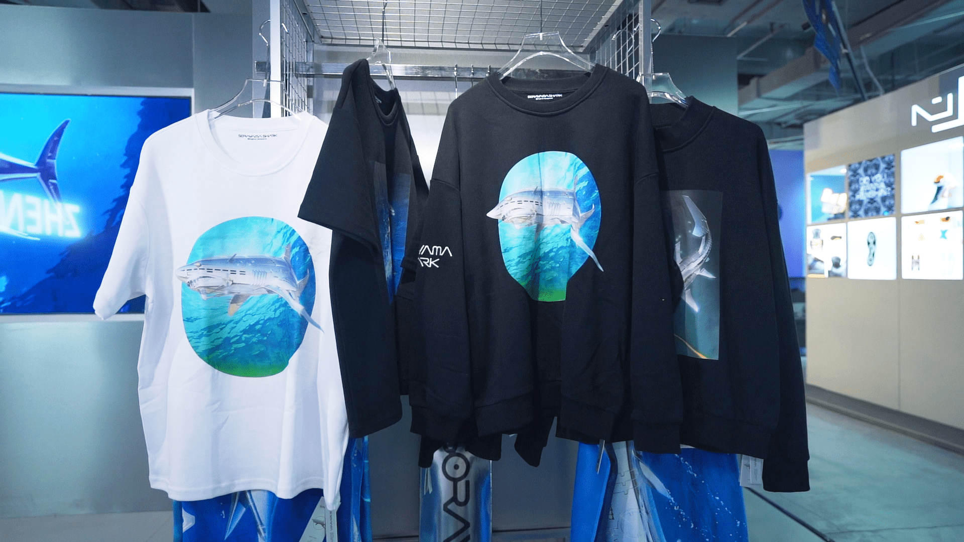 二楼还能够找到像至臻(ZHEN.)与 Queen Studios 这种关于艺术、IP 衍生品的国内著名品牌。去过往年 INNERSECT 的朋友们相信对至臻也不会陌生,早在 2020 年就协助空山基打造国内展位,今年也不例外,再次与空山基联手推出了一系列的服装单品,还有会场限定 3 体的巨鲨摆件以及相应的数字藏品。
