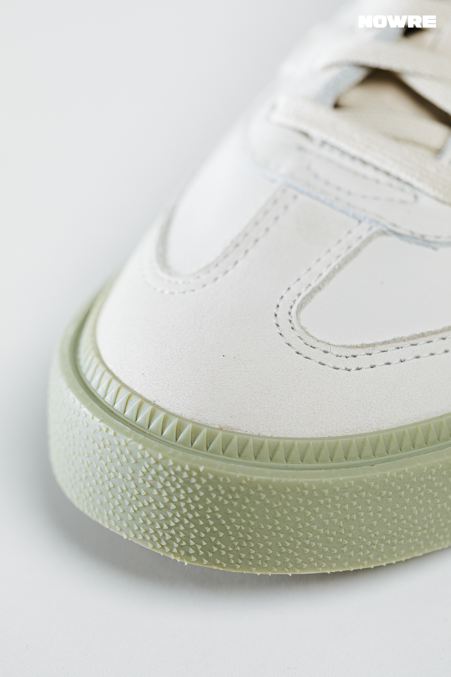 另一双联名 Type O-8 选择了 adidas Originals Samba 作为蓝本。Samba 最初的定位是室内足球鞋,运动风的属性更强一些。因为英国人足球文化盛行,有很多英国人会经常穿着 Samba,为了更加符合日常生活的需求,Samba 经过多次改良变得更加休闲百搭。Type O-8 的鞋面主要是由全粒面皮革与麂皮鞋面,看起来很有质感。侧面标志性 logo 采用了特殊的材质,在街头风格中注入了 OAMC 的时尚元素。