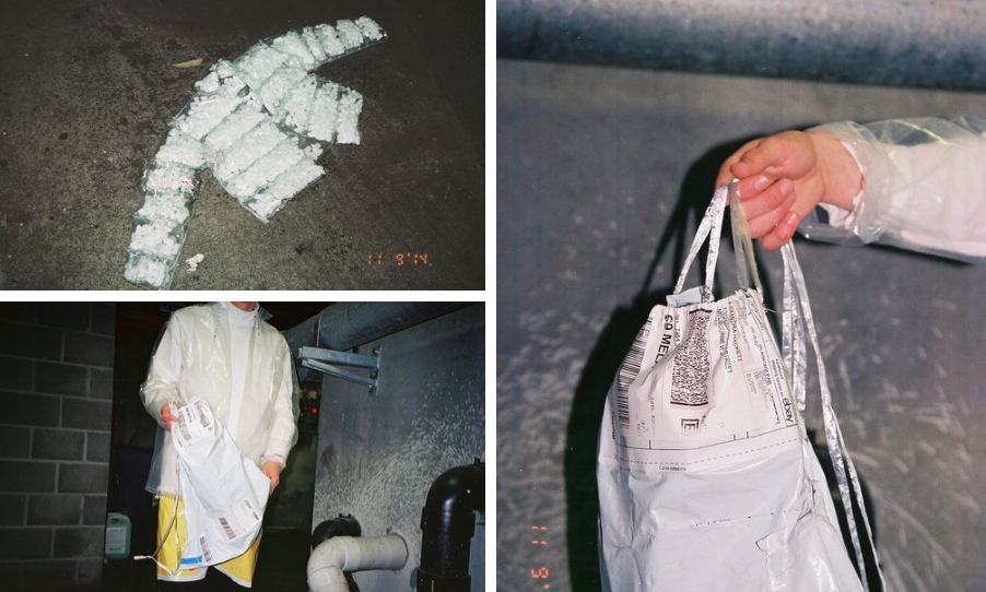 除了通过对 Nike 产品的改造设计而被众人所熟知之外,她也擅长将回收的废弃材料、或者日常生活中的常见物品重新 DIY 成全新的单品。 像是她曾把香蕉皮改造为胸罩、麦当劳包装壳改造为帽子,在 PLEASURES x Chinatown Market 和 Balenciaga 玩 IKEA 购物袋之前,她就利用这一材料制作成了渔夫帽、钱夹、裙子:
