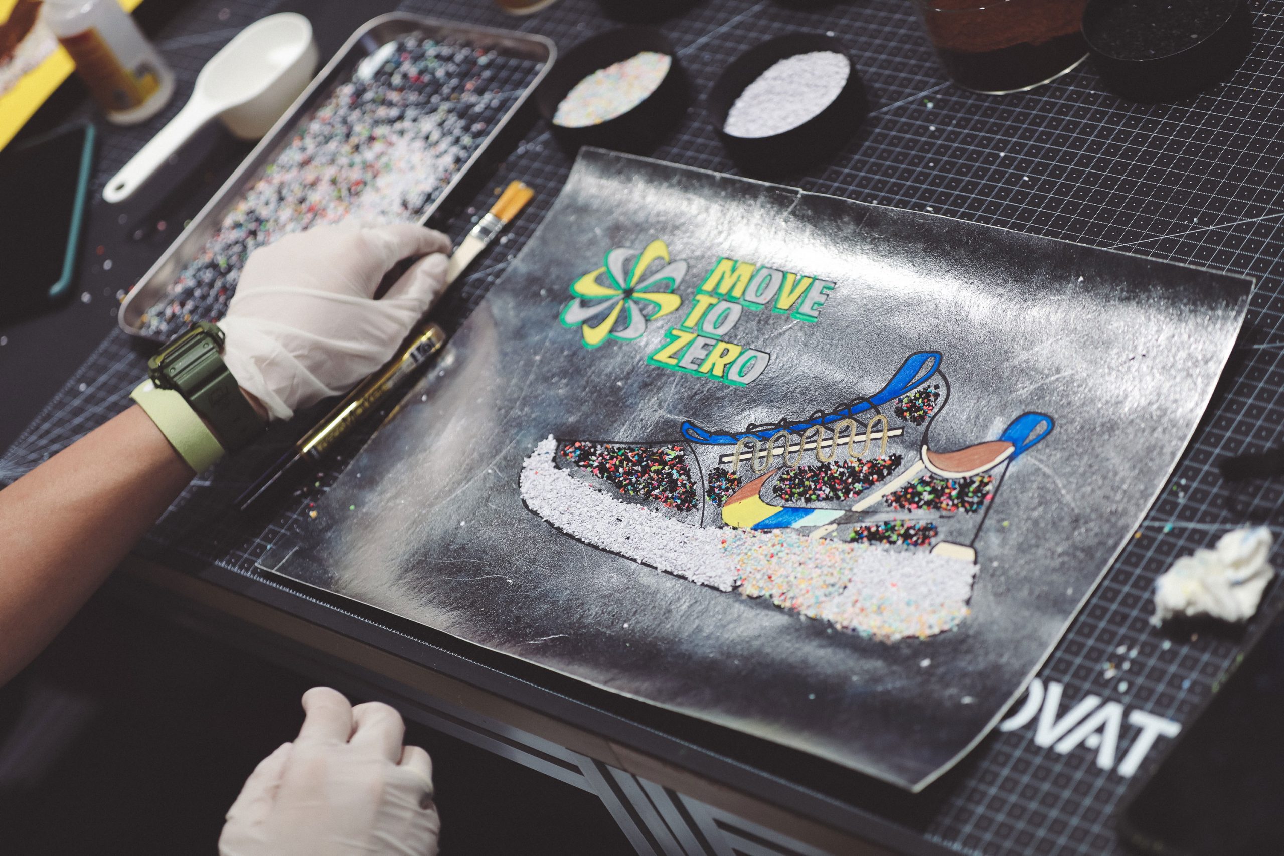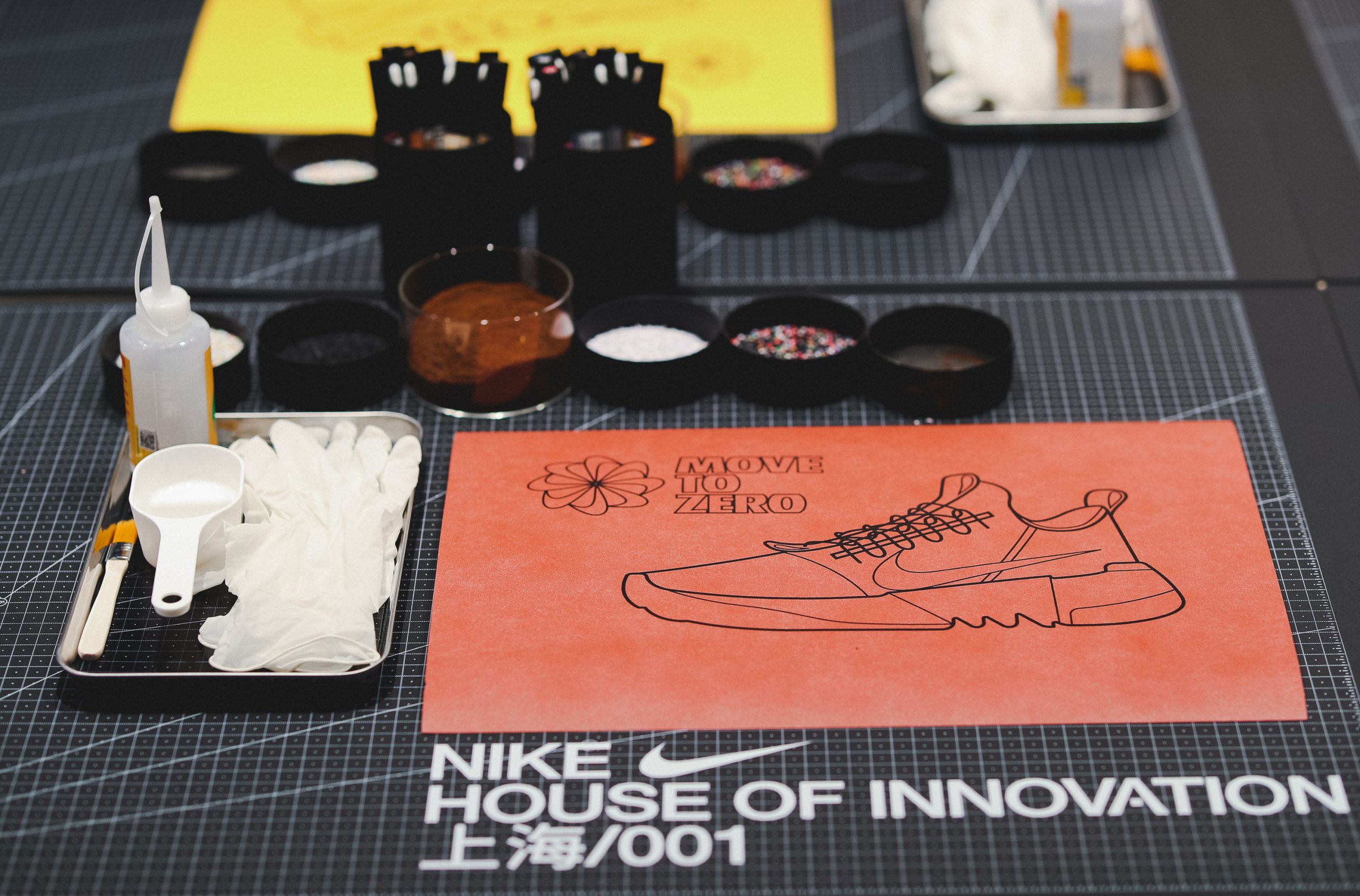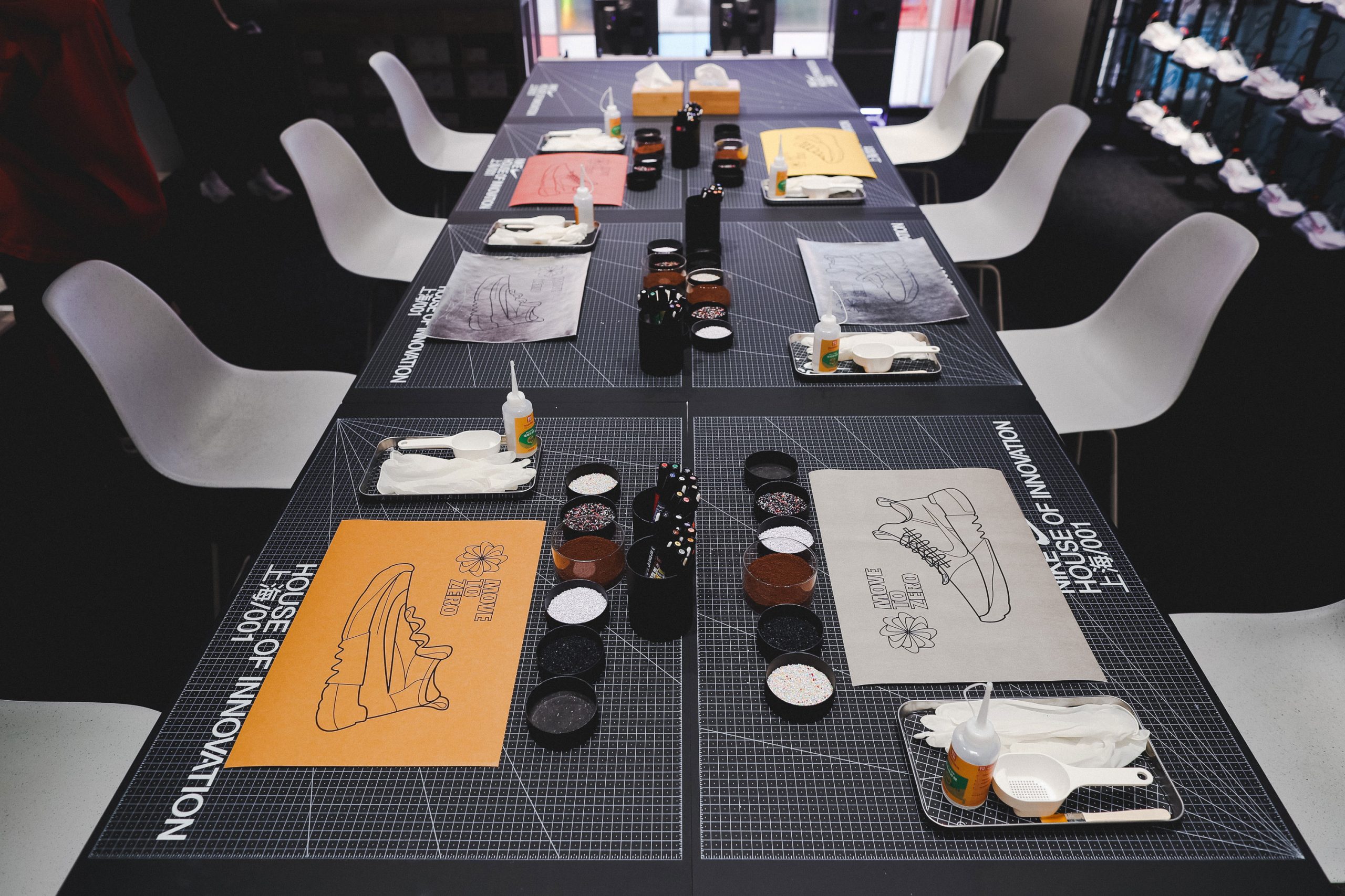 除此之外,举办让每个人都有机会参与的 Workshop 也是 Nike 一贯的作风,这次的主题是用「Space Hippie」的主要原材料 —— Nike Grinds 和咖啡渣作画,将创作灵感和环保理念注入作品,绘制专属于自己的 Nike Space Hippie。作为大家都熟知的「手残党」,MEL 也不负众望地创作了一幅非常「渣」的作品,最终借着同事圆圈的「妙手回春」,拯救了这幅作品。到底有多差劲?还请大家自行通过最上方的视频来感受一下…