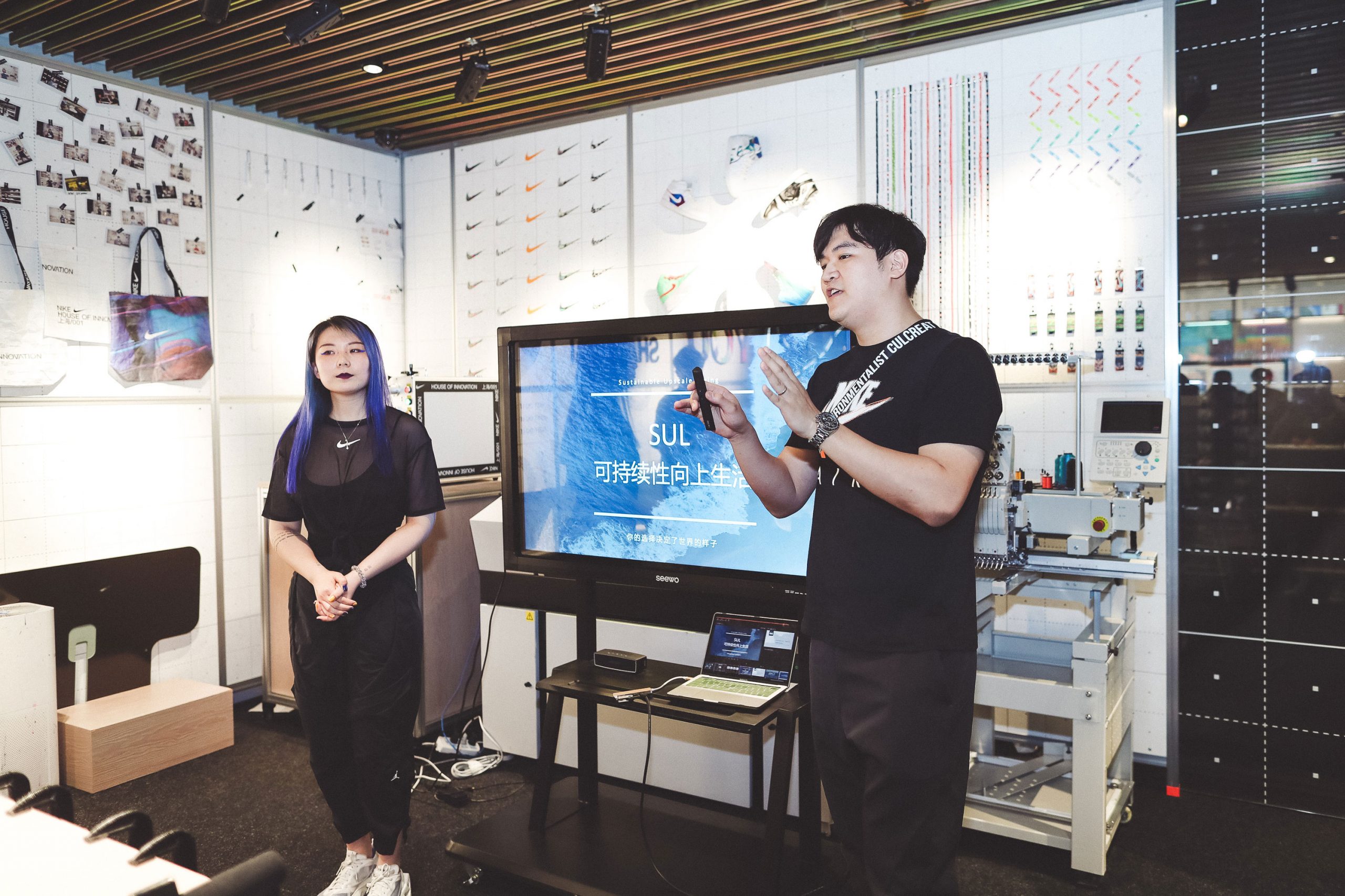 在「Space Hippie」正式发售的第一天,我们也「翘班」前往位于上海的 Nike 001 旗舰店,参加了一场「环保讲座」,了解了不少 Nike 在这 20 多年中为环保所作出的创新,以及「Space Hippie」这一系列是如何形成的。