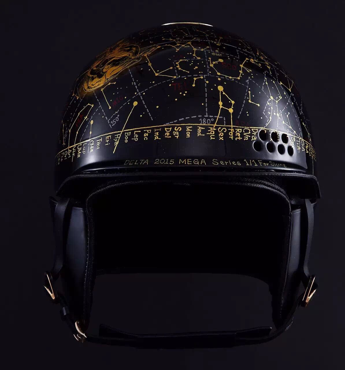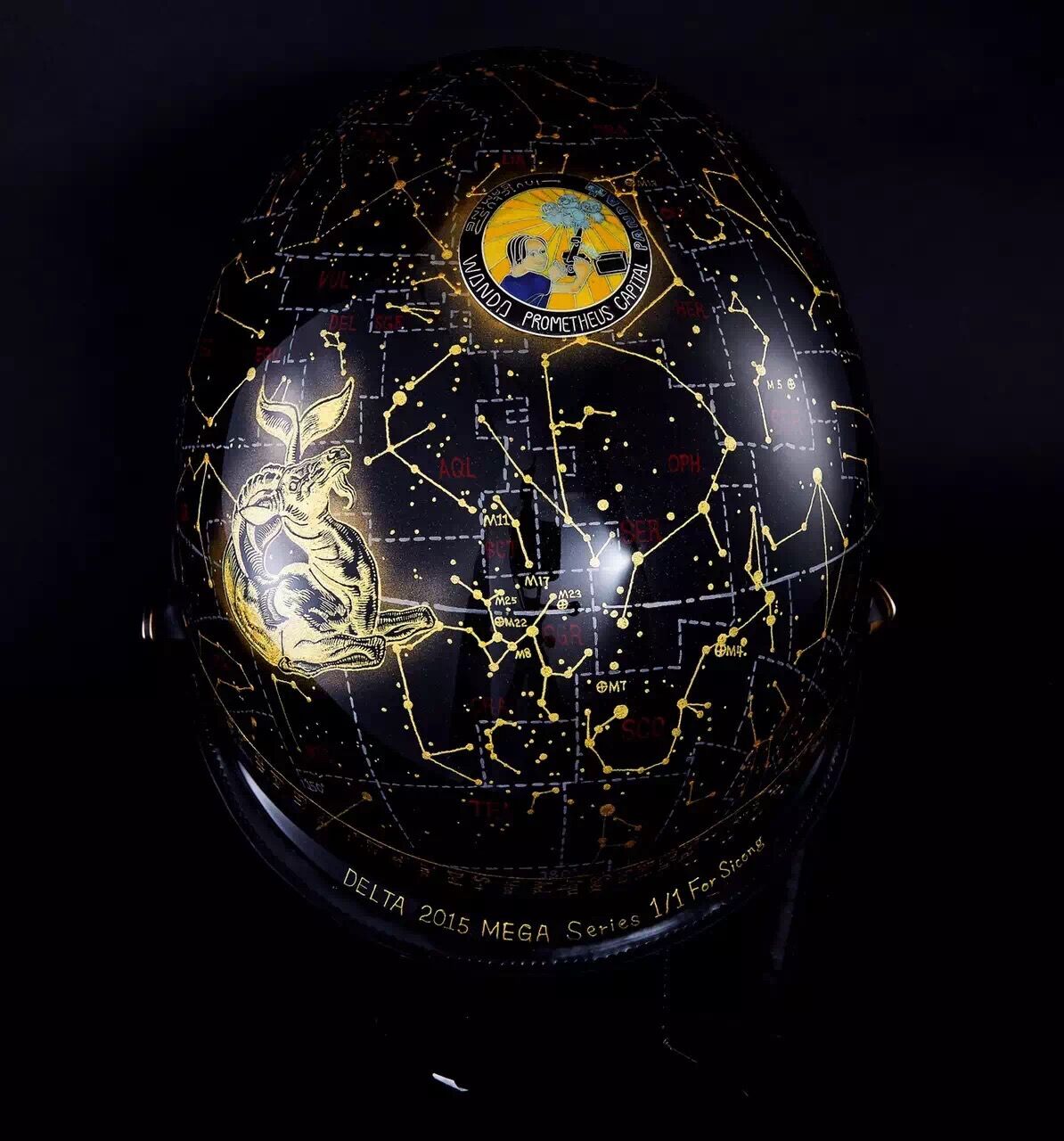 出于隐私我并没有问这款头盔的售价,但光是成本十万就足以让人惊掉下巴。整个盔用上了 3D 打印、激光雕刻、花丝镶嵌等多种技术;用料也毫不手软,用到了金币、景泰蓝,以及英国、美国和法国进口的顶级皮革。因为是朋友送给王思聪的生日礼物,所以张东辉在图案设计上选择了夏季星空图,把摩羯座的形象跟其他形象分开。最顶上还有一个用景泰蓝制作的王思聪的微博头像,周围环绕了万达、熊猫 TV、普斯集团等王思聪的产业的标识。