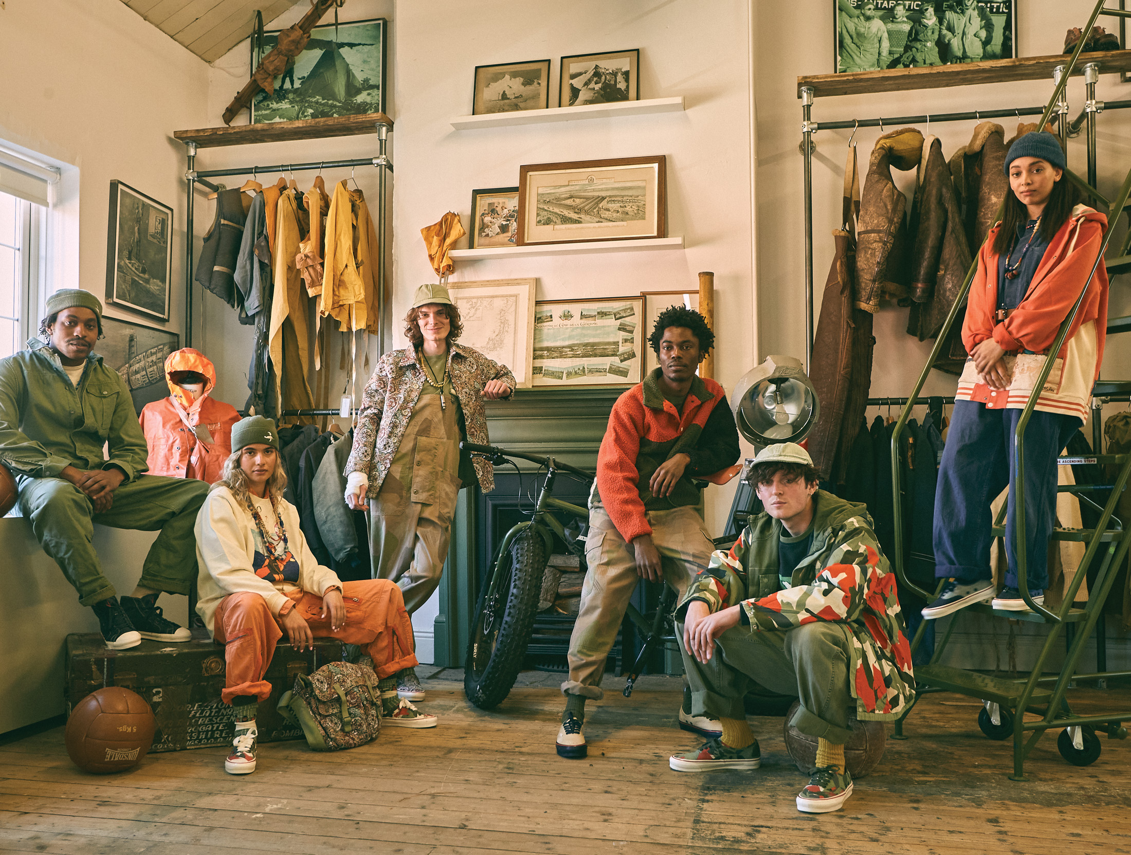 与一般采取 Vintage 为灵感的品牌不同,Nigel Cabourn 并不会将 Vintage 单品裁剪并重新利用,而是透过参考形式打造出自己独特的版本。本合作系列中,迷彩配色的 OG Authentic LX 鞋款与同款衬衫正是如此,Nigel 以二战时期的「涂鸦」迷彩纹路为基础,加入了橙色点缀,使整个设计更加鲜艳。