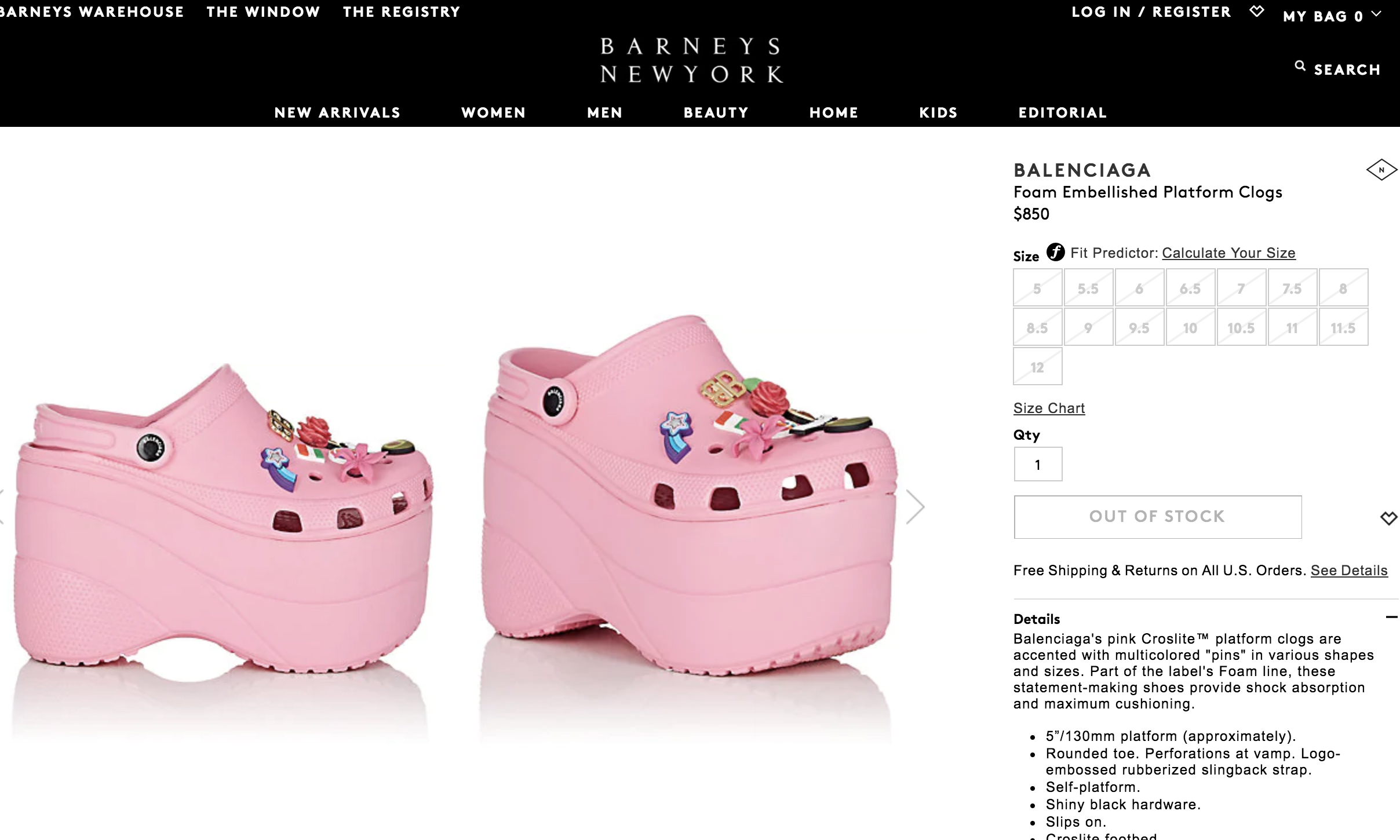 说丑?人家卖得好着呢,一鞋难求坐等涨价 (图片来源:Barneys New York)