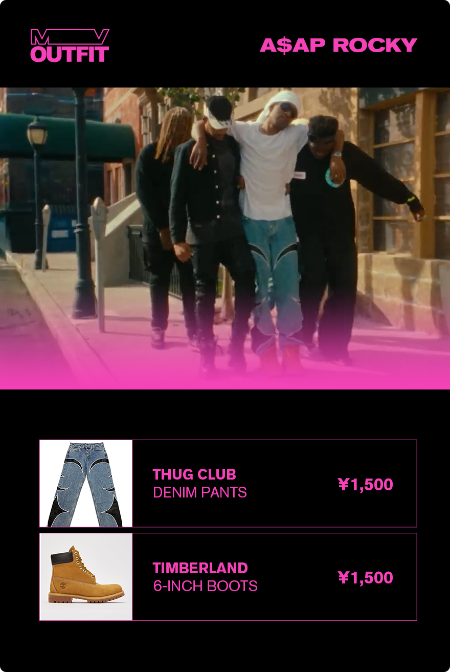 本次 MV 中的穿搭虽然没有很多浮夸、不接地气、难驾驭的单品出现,但每一套都能让你感觉到这是「Rocky Style」:中国设计师作品 PENULTIMATE、小众品牌 COUCOU_BEBE75018、今年大火的 Thug Club、专业钓鱼服 Bass Pro Shops、出镜率颇高的 AWGE 和 Timberland… 如果你想了解更多 A$AP Rocky 同款单品的细节,不妨点击观看上方的视频。