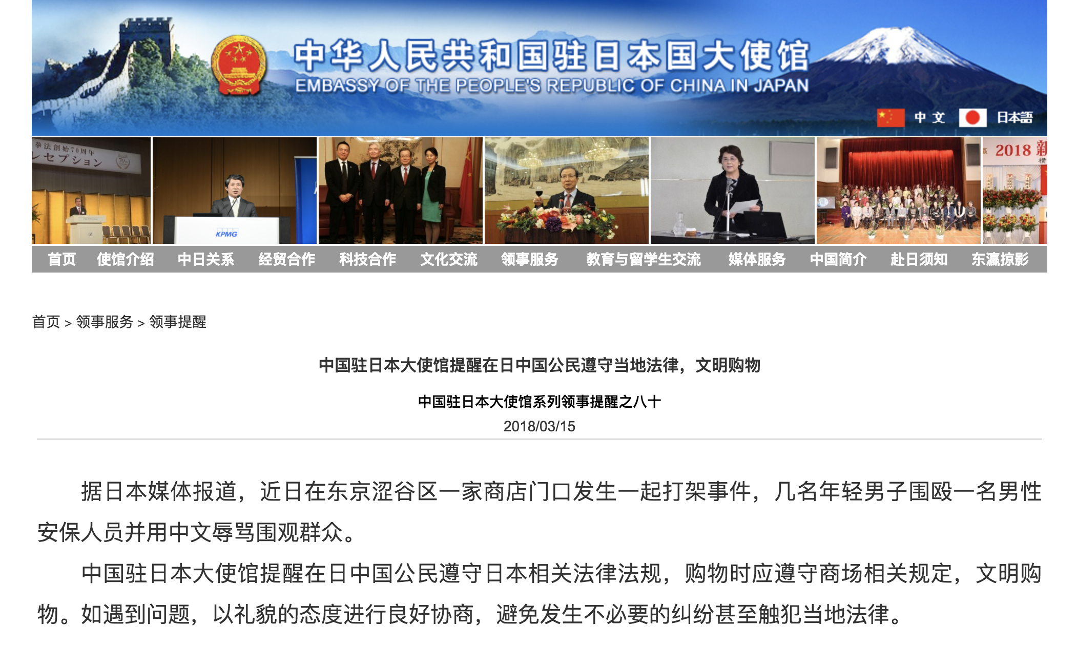 几天后,领事馆方面就发表了声明,提醒大家出门在外一定要 “遵守当地法律,文明购物”,各位请注意学习、领会。