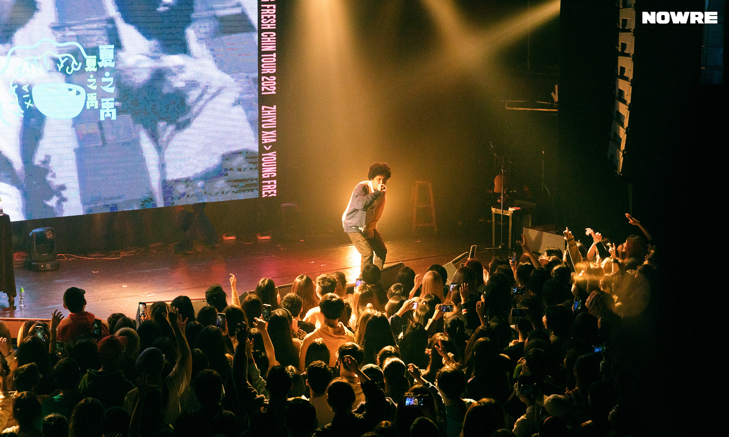 在去年夏天,老夏与他的「汽油队」在节目里留下了一首充满格局的《We We》,同时还有《We Can Be Chilling》和《Hometown》两个令人回味无穷的个人舞台。如今,那个起初在节目里嚷嚷着「明堂逼我来冲 KPI」的「下头人」,已经一路走到了首次个人巡演的舞台上。借着上海场演出,NOWRE 也来到了现场记录下了此回「年轻的下巴颏子」巡演的全过程。兴许是面对着开票即售罄、现场人满为患的压力,向来吊儿郎当的老夏在后台竟与我们坦言自己的焦虑不安:「我在开始一场演出前会持续性焦虑,需要不断给自己做心理建设。」但当他握紧 mic 跃上舞台的那一刻,一位热血青年倏忽之间从他的身体里蹦蹿而出,聚光灯下只留下那个凶猛的说唱歌手夏之禹。