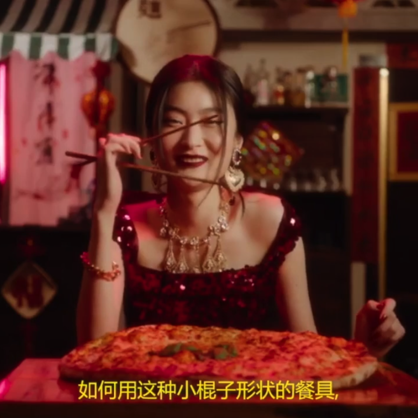 首先,短片配音的 Dolce & Gabbana 念法错误,不知道是否刻意模仿了中式错误发音;其次,片中将筷子形容为 “小棍子形状的餐具”,而披萨却是 “伟大的食品”;第三,西西里甜卷被认为 “对你们来说太大了”…这些容易引发歧义的措辞和肢体动作令人倍感不适,因此这组宣传片一经发布,种族歧视、辱华倾向的评论如雪片般飞来。