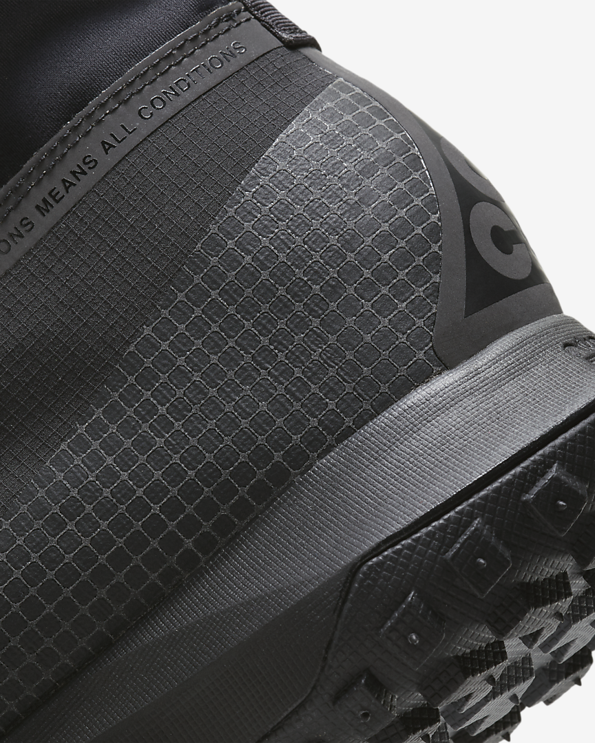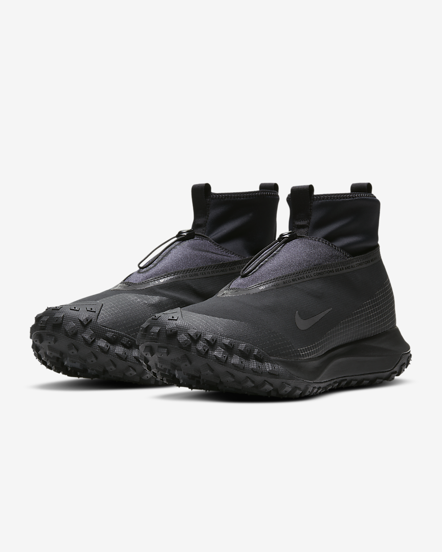 另外,ACG 的鞋款也是相当具有代表性,毕竟这个支线是由户外鞋款开始做起的。这次为大家带来的是 Mountain Fly 款式,与外壳冲锋衣同样融入了 GORE-TEX 技术,面料则是使用了抗撕裂的 rip-stop。值得一提的是 Nike 在设计这双鞋时还特地去了俄勒冈的 Smith Rock 公园,并透过攀岩等剧烈运动来实测鞋款的耐用度以及抓地感,充分体现了 ACG 忠于户外的态度。